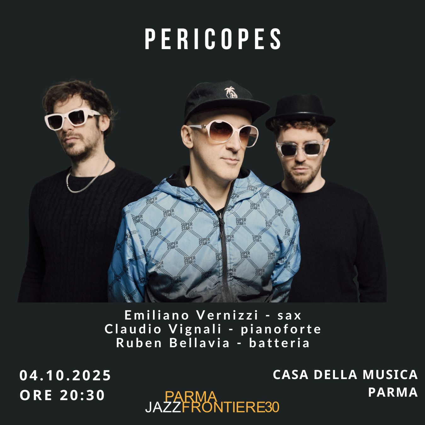 Torna a ParmaFrontiere il supergruppo Pericopes, capitanato dal musicista parmigiano Emiliano Vernizzi. L’occasione vede un organico totalmente rinnovato con l’ingresso di Vignali al pianoforte e Bellavia alla batteria.