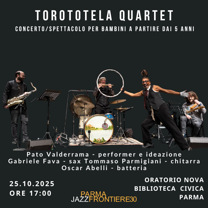 Con pochi elementi scenografici rubati spesso al loro uso quotidiano e ad effetti speciali comici ma ingegnosi, Torototela dà vita a spettacoli che si nutrono della voce, del corpo e dell’emozione dell’attore. Torototela, insieme ad un gruppo di impavidi musicisti, ci invita a soffiare nel libro magico per evocare ritmi, melodie di altri tempi e di altri luoghi sulle orme della storia del Jazz. Un viaggio fatto di quadri, di andate e ritorni, di contrappunti e silenzi, di gesto e parola; uno starnuto teatrale e musicale dove pubblico, attore e musicisti si incontrano,cadono e si rialzano, uniti.